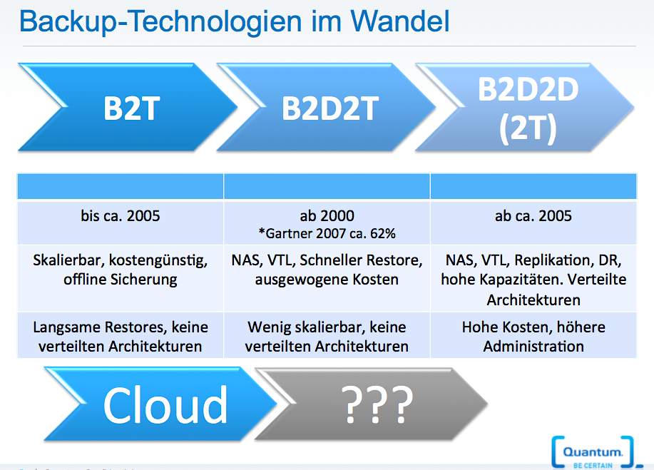 Während unserer letzten Fachtagung im LRZ ist die Firma Quantum in ihrem Vortrag "Positive Effekte der Daten Deduplizierung beim Backup- und Disaster Recovery" auf die o.g. Technologie- und Lösungsansätze inklusive von Kundenbeispielen hierzu detailliert eingegangen. Als registrierter Benutzer unserer Seite können Sie das zugehörige PDF-Vortragsdokument über unsere Rubrik "Downloads" herunterladen: