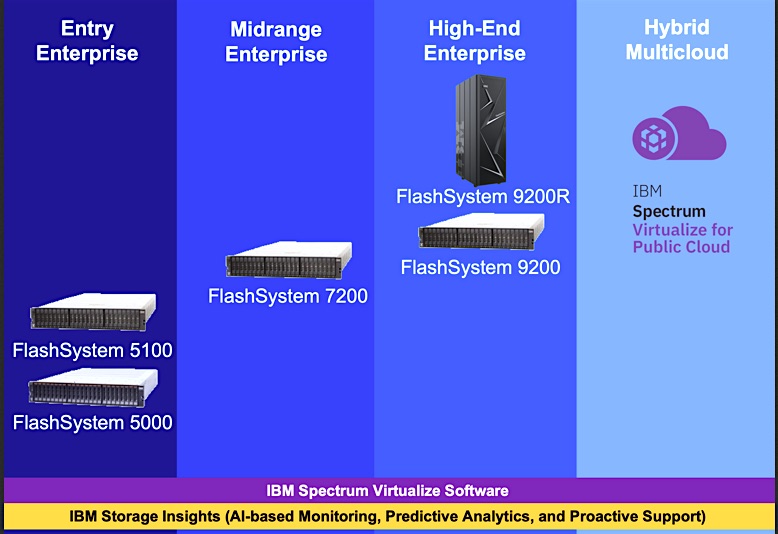 Die Abbildung zeigt das aktuelle IBM Flash Storage Angebot (Bildquelle: IBM).