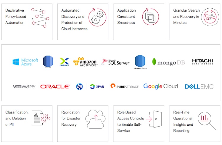 Die neue Version liefert darüber hinaus neue Funktionen für VMware-Umgebungen und unterstützt Workloads von Hadoop, Nutanix, MySQL, PostgreSQL, MariaDB, SQLite, HBase oder MongoDB. Über die neue Benutzeroberfläche sollen autorisierte Anwender per Instant Access direkt auf virtuelle Maschinen zugreifen können und einzelne Dateien ohne Agenten wiederherstellen.