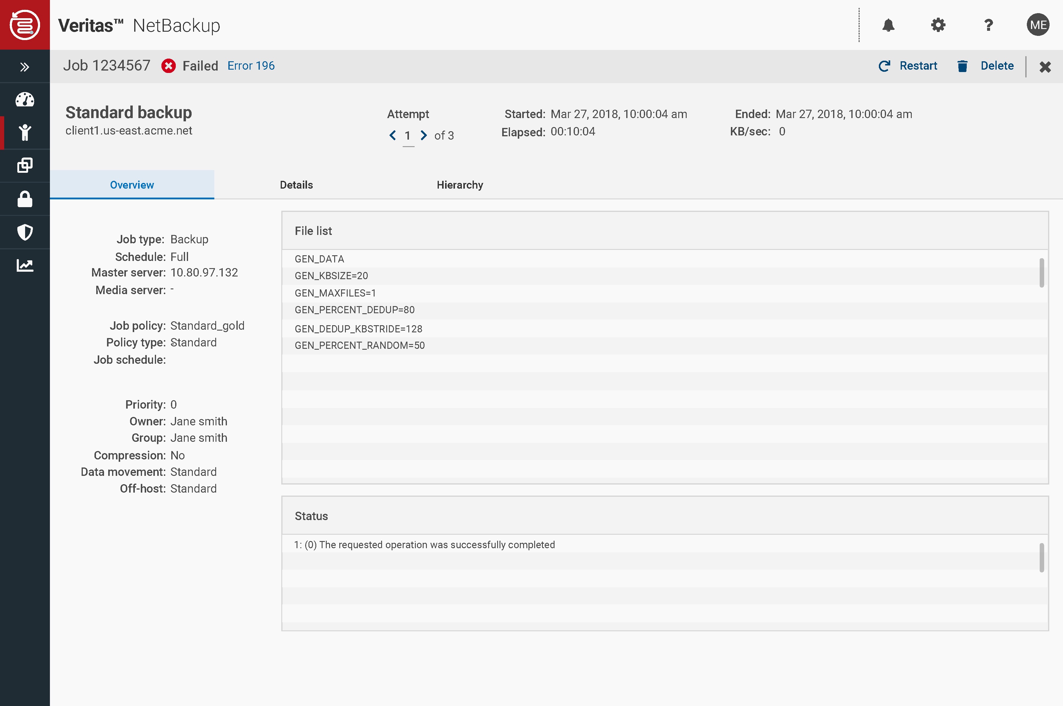 Alle autorisierten Anwender, einschließlich der Backup-Administratoren, haben auch über ihr mobiles Gerät Zugang zur neuen, modernisierten Benutzeroberfläche von Veritas NetBackup und können auf ihre Daten zugreifen, diese sichern und wiederherstellen. Mit Hilfe der Integration des Webservices „Veritas Smart Meter“ lassen sich Fehler identifizieren, die Kapazitätsauslastung der Backup-Umgebung einsehen und direkt Aktionen auslösen, damit die Backup-Umgebung reibungslos funktioniert.