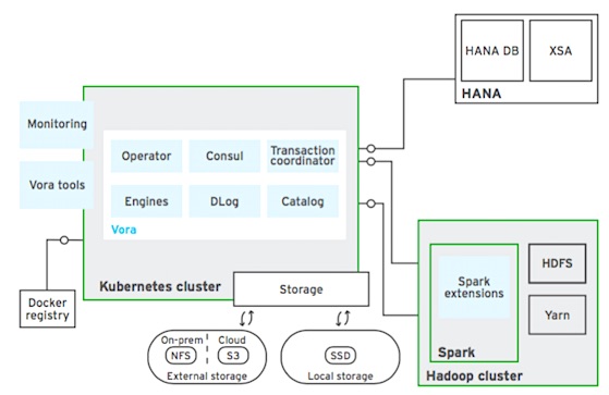 Abb. 1: SAP Vora 2.0 Architecture (Bildquelle: Red Hat Enterprise OpenShift Container Platform and SAP Vora, PDF document)