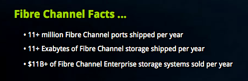 Zum Hintergrund: ca. dreißig Milliarden Transaktionen werden laut Brocade täglich über Fibre Channel abgewickelt, und 96 % aller Banken, Airlines und Einzelhändler weltweit setzen auf diese Technologie... 11+ Exabytes an Fibre Channel Storagekapazität werden insgesamt gemäß der FCIA (Fibre Channel Industry Association) pro Jahr ausgeliefert (s.a. Abb. 1 unten). Mit dem Brocade G620 kündigte der Netzwerkspezialist jetzt seinen ersten Gen-6-Fibre-Channel-Switch der Branche für SAN-Anwendungen an. Der neue Switch mit hoher Dichte ist nach Angaben des Herstellers besonders für anspruchsvolle Workloads bei Virtualisierungsprojekten, neuen RZ-Architekturen sowie für künftige Storage-Technologien im Rahmen kritischer Business-Applikationen geeignet.