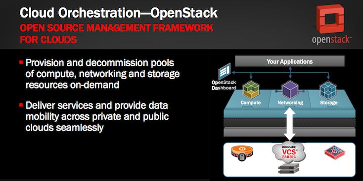 Das Brocade VCS Plugin ist als OpenStack "Grizzly" Version erhältlich und erweitert die bestehenden Möglichkeiten der Brocade VCS Fabric Technologie wie Netzwerk-Automatisierung, Effizienz und Elastizität um eine vereinfachte Bereitstellung durch OpenStack. Dies ermöglicht es Betreibern, Kapazitäten und Services in Cloud-basierten Rechenzentren schneller bereitzustellen als mit den klassischen Netzwerk-Architekturen bzw. Tools.