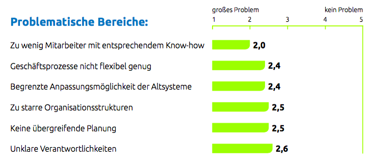 Abb. 1: 2018 berichten weniger CIOs von Problemen bei der Digitalisierung… Problematische Bereiche (Bildquelle: Capgemini, 2018)
