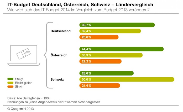 Grafik 1: Capgemini - Entwicklung der IT-Budgets 2014 nach Ländern D, A, CH