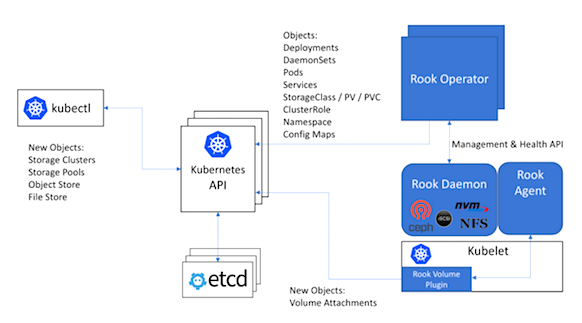 Rook verwandelt verteilte Storage-Software in Storage-Dienste, die sich selbst verwalten, skalieren und heilen können. Dies geschieht durch Automatisierung der Storage-Administrator-Aufgaben, einschließlich Bereitstellung, Bootstrapping, Konfiguration, Provisionierung, Skalierung, Upgrade, Migration, Disaster Recovery, Überwachung und Ressourcenmanagement. Zusätzlich nutzt Rook die Leistungsfähigkeit der zugrundeliegenden Cloud-native-Plattform für Container Management, Terminierung und Orchestrierung.