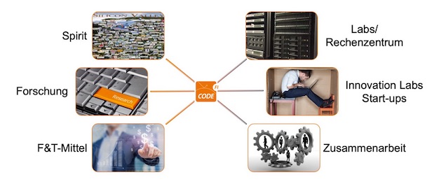Abb. 2: Das Forschungsinstitut CODE vernetzt Experten für Cybersicherheit aus Forschung, Militär, Wirtschaft, Industrie, Behörden und Verbänden (Bildquelle: CODE)