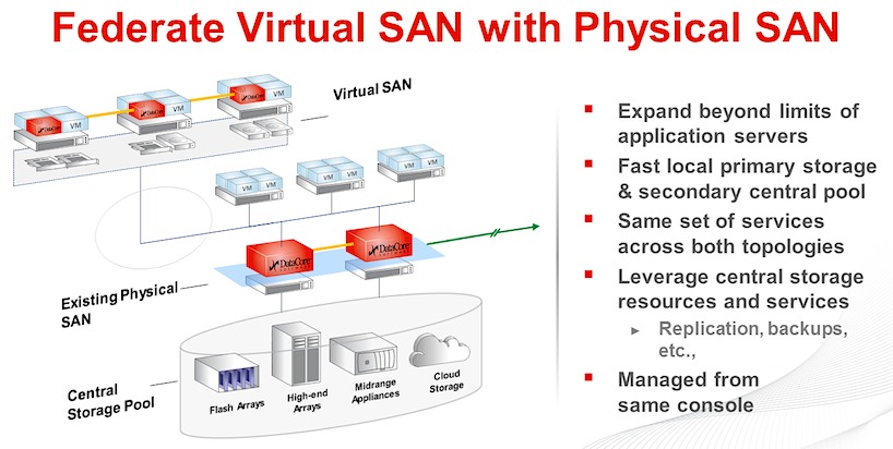 - Kann auf der Server-Seite als virtuelles SAN eingesetzt werden und gleichzeitig physische SANs verwalten.