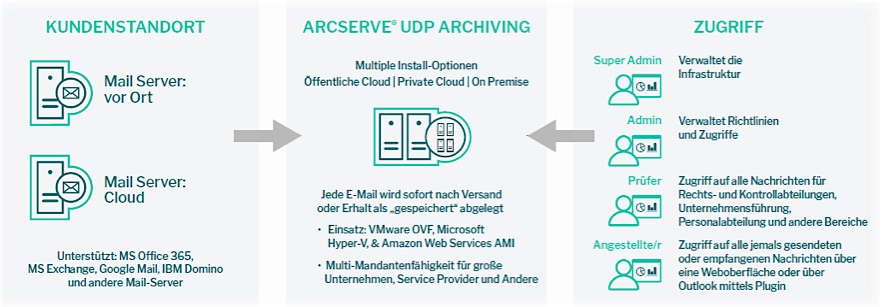 Abb. 1: E-Mail-Archivierung unterstützt Compliance mit Anforderungen des Datenschutzes (Quelle: Arcserve)