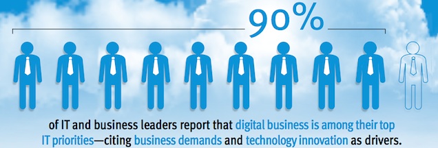Zum Hintergrund: Wenn es um die künftige Wettbewerbsfähigkeit ihrer Unternehmen geht, messen IT- und Business-Entscheider der Digitalisierung und der Nutzung von Hybrid-Clouds herausragende Bedeutung bei. Das geht jedenfalls aus einer weltweiten Umfrage hervor, die IDG Research Services im Auftrag von EMC erhoben hat. Die wesentliches Resultate: Unternehmen, die auch künftig noch ihre Geschäftsfelder erweitern, Kunden ein zeitgemäßes Markenerlebnis bieten und bei alledem flexibel und agil bleiben wollen, müssen „digital denken“ lernen. 92 Prozent der Befragten gaben an, dass ihre Unternehmensstrategie schon jetzt digitale Geschäftsabläufe begünstige oder sogar voraussetze; für 90 Prozent gehört die Digitalisierung dementsprechend zu den Top-Prioritäten der nächsten ein bis drei Jahre. In Deutschland liegen beide Werte mit 95 beziehungsweise 93 Prozent etwas über dem globalen Durchschnitt. Als wichtigste Ziele der Digitalisierung benannten die Teilnehmer der Umfrage: