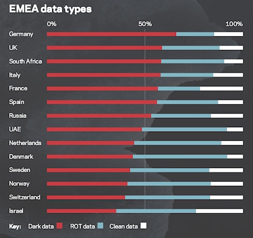 Zum Hintergrund: Deutsche Unternehmen kennen den Inhalt von mehr als der Hälfte ihrer gespeicherten Firmendaten nicht, wie der Databerg Report 2015 Bericht von Veritas Technologies LLC zeigt, dem nach der Trennung von Symantec neu aufgestellten Anbieter für Backup- und Recovery-Lösungen (NetBackup / Backup Exec / Software Defined Storage InfoScale / Availablity etc.). Dem Bericht zufolge ist deutschen Firmen der Inhalt von 66 Prozent ihrer gespeicherten Daten unbekannt. Dieser Anteil fällt in die Kategorie „Dark Data“. Demnach wendet eine durchschnittliche deutsche Firma mit 1.000 Terabyte an Daten jährlich 594.000[1] Euro auf, um Zitat „sinnlose und triviale Daten vorzuhalten, die irrelevant für das Geschäft sind.“