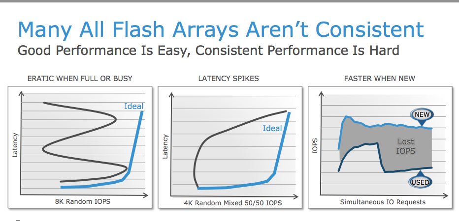 - EMC garantiert ein kontinuierliches Anwortzeit-Verhalten von 0,5ms unter permanenter Last (random 4k blocks, 50% reads / 50% writes).