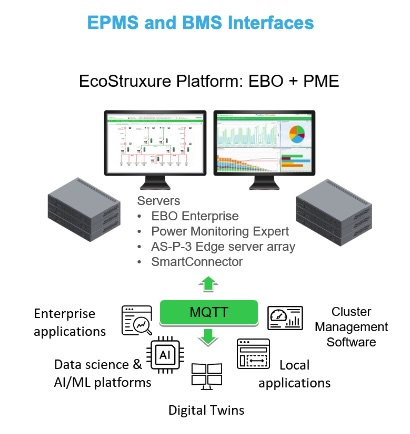 Abb.: AI Infrastructure and Liquid-cooled Controls Design based on EcoStruxure Building Operation (Bildquelle: Schneider Electric, EcoStruxure™ Reference Design CRD2).