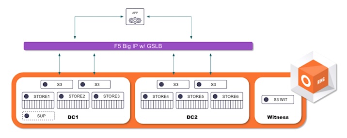 Abb.: Validated design, RING deployed in two sites with F5 (Bildquelle: Scality).