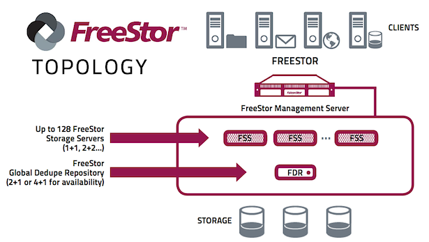 - Deduplizierungs- und Datensicherungsfunktionen von FreeStor verbessern die Ausnutzung verfügbarer Speichermedien, so dass Unternehmen Speichereinheiten einsparen können.