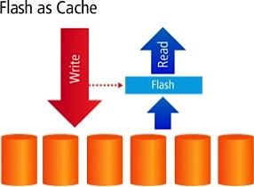 Abb. 1: Cache-Architekturen mit Flash geben Schreibvorgänge an die Festplatte weiter und lesen direkt vom Flash