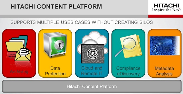 Die Hitachi Content Plattform basiert technisch auf einem Objektspeicher-System: dazu gehören Archivierung, Backup-free- und Hybrid Cloud Storage für Anwender und Applikationen auf einer integrierten Plattform.