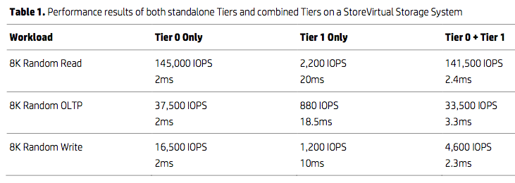 (1) Beruht auf zufällig ausgewählter Lese-, Schreib- und OLTP-Leistung von StoreVirtual Storage mit SSD- und SAS-Laufwerken, im Vergleich mit dem Einsatz von nur HDD-Laufwerken.