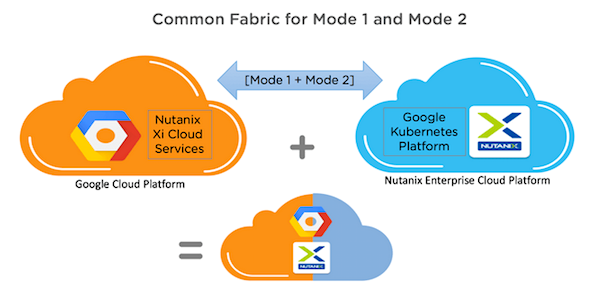 Abb. 1: Verbindung privater Cloud-Architekturen mit skalierbaren öffentlicher Cloud-Umgebungen (Bildquelle: Common Fabric for Mode 1 and Mode 2 / Nutanix / see embedded weblink)