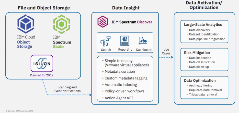 IBM Spectrum Discover https://www.ibm.com/us-en/marketplace/spectrum-discover can help you to better understand your oceans of data, which, in turn can improve and accelerate large-scale analytics, ease data governance, and improve storage economics. By characterizing data for analytics, IBM Spectrum Discover can help improve competitive advantage and speed critical research. Based on technology from IBM Research designed to provide data insight of unstructured data for analytics, governance and optimization, IBM Spectrum Discover automatically enhances and then leverages metadata—data about your data—to provide these capabilities. At a time when data is growing at 30 percent per year, finding the right data for analytics and AI can be harder than finding a needle in a haystack. IBM Spectrum Discover rapidly ingests, consolidates, and indexes metadata for billions of files and objects from your data ocean, enabling you to more easily gain insights from massive amounts of unstructured data. IBM Spectrum Discover supports unstructured data in IBM Cloud Object Storage and IBM Spectrum Scale with plans to also support Dell-EMC Isilon in 2019.