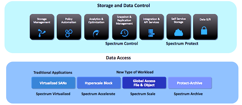 Das GUI Spectrum Control kann auf jedem Browser-fähigen Gerät ausgeführt werden, vom Desktop über iOS bis hin zu Android-Mobilgeräten. Mit der GUI „Hyper-Scale-Manager“ lassen sich technische und administrative Vorgänge über ein Mobile-Dashboard steuern. Die mobile Speicherverwaltung soll laut Hersteller dazu beitragen, Speicherausfallzeiten, Überlastung, Überprovisionierung und Anwendungsunterbrechung zu verringern.