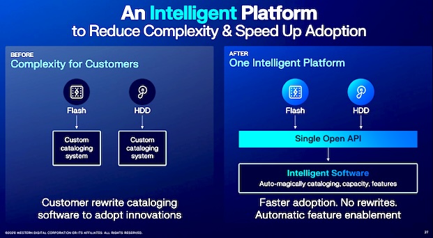 WD kündigte an, sein Plattformgeschäft auszuweiten. Zentraler Bestandteil der Erweiterung ist die Entwicklung von intelligenter Software als Layer über eine offene API, deren Einführung für 2027 geplant ist. Unternehmen mit Datenvolumina von über 200 Petabyte sollen damit die gleiche Speichereffizienz und Wirtschaftlichkeit erreichen, wie sie Hyperscaler heute nutzen.