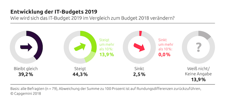 Abb. 1: Entwicklung der IT Budgets 2019 (Bildquelle: Capgemini, Dez. 2018)