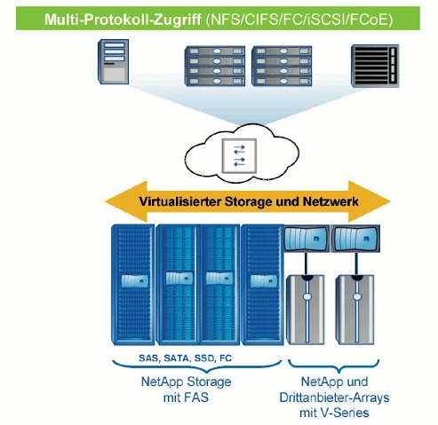 - Protokolle: CIFS, NFS, iSCSI, NDMP, FC