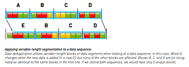 Abb. 1: Deduplizierung mit variabler Blocklänge (Bildquelle: Quantum Corp.)