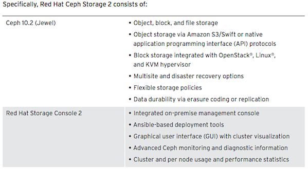 Abb. 1: Red Hat Ceph Storage 2, Bestandteile (Bildauszug / Quelle Red Hat)