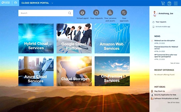 Abb. 1: Self-service catalog / Cloud Service portal (Bildquelle: Micro Focus HCMX)