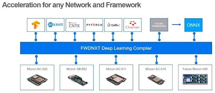 Abb. 1: The FWDNXT inference engine works with major deep learning platforms (Bildquelle: Micron Blog by Mark Hur, Power AI by Embedding an Inference Engine in Your Accelerator).