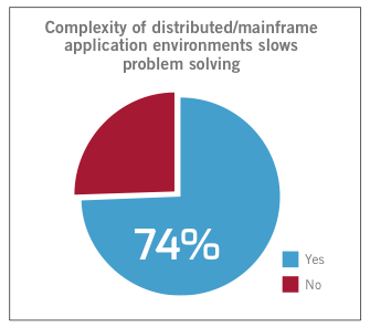- 74 Prozent der Befragten glauben, dass die zusätzliche Komplexität der Anwendungen, die auf verteilten und Mainframe-Umgebungen betrieben werden, die Fehlerlösung verzögert.