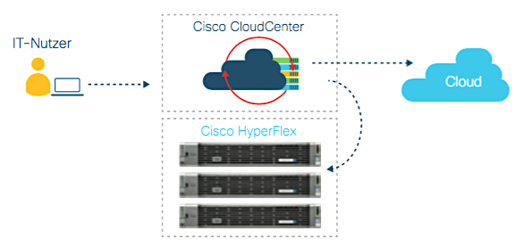 Abb 2: Nutzung der hyperkonvergenten Infrastruktur- und Cloud-Ressourcen nach Bedarf via Self-Service (Bildquelle: Cisco HyperFlex)
