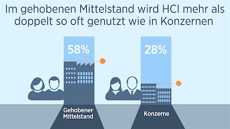 Vor allem der gehobene Mittelstand hat demnach HCI als geeignetes Mittel entdeckt, seine Rechenzentren fit zu machen. So votierten die Experten dieses Unternehmenssegment mit 58 Prozent klar an die Spitze der heutigen HCI-Anwender. Die großen Mittelständler hängen in der Hinsicht die Konzerne (28 Prozent) ab. Kleine und mittelständische Unternehmen kommen auf einen Nutzeranteil von 13 Prozent.