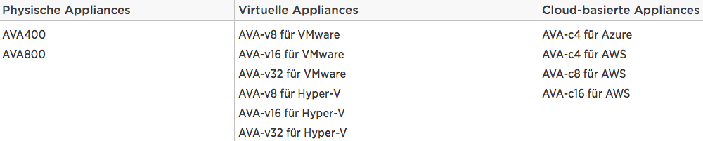 Abb. 1: Bildquelle NetApp / derzeit verfügbare AltaVault Modelle, Stand 27. Mai 2015