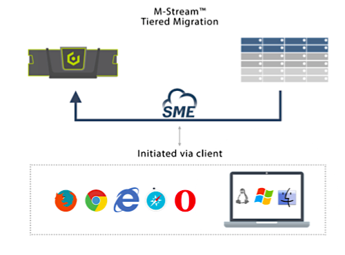 Abb. 1: Self-Hosted Enterprise File Fabric™ / M-Stream Tiered Data Migration (Bildquelle: Storage Made Easy, SME)