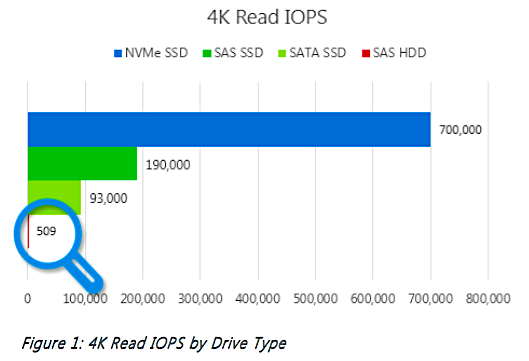 Verglichen mit herkömmlichen High-End-Festplatten zu Kosten von >$1/IOPS erzielt die Micron-NVMe-SSD nach Herstellerangaben hier Einsparungen von rund $0,01 pro IOPS.