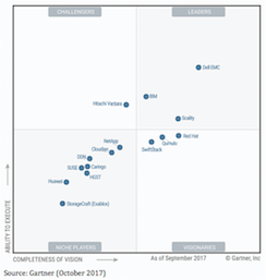 Scality, ein Pionier im Bereich Software-Defined, Multi-Cloud Storage wurde jetzt von Gartner Inc. im aktuellen „2017 Magic Quadrant for File Systems and Object Storage“ vom Oktober erneut im Leader Quadranten aufgeführt [2]; bewertet wurden 15 Unternehmen. Bei jedem Anbieter wurden zahlreiche Eigenschaften einschließlich „Vollständigkeit der Vision“ und „Fähigkeit zur Umsetzung“ analysiert.