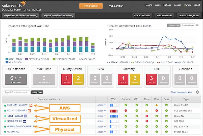 Abb.1: Bildquelle SolarWinds, Dashbord Database Performance Analyser