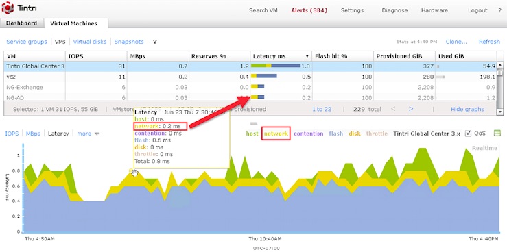 Abb. 1: Tintri Per-VM latency breakdown, including non-storage factors such as Network & Host Latency (Bildquelle: Tintri Inc.)