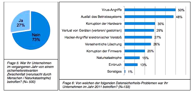 - Das Versagen von Betriebssystemen sahen die Befragten als zweithäufigste Ursache für die Gefährdung der Datensicherheit (48 Prozent) - ein Anstieg um 21 Prozent gegenüber 2010.