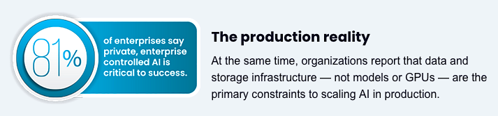 "91 % der Unternehmen mit Private-AI Implementierungen geben an, Objektspeicher im Produktionsbetrieb aktiv zu nutzen.