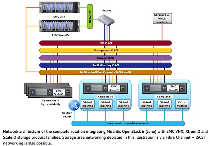 Mirantis als OpenStack-Anbieter und EMC (Cloud Computing, Speicherinfrastruktur-Lösungen) haben hierzu die EMC-Speicherplattformen VNX, EMC XtremIO und EMC ScaleIO mit Mirantis OpenStack zertifziert. Die Lösung ermöglicht es Cloud-Architekten, Betreibern und IT-Administratoren, für den Einsatz in Großunternehmen geeignete, skalierbare und mandantenfähige OpenStack-Clouds unter Verwendung von EMC-Speicherlösungen einzurichten.