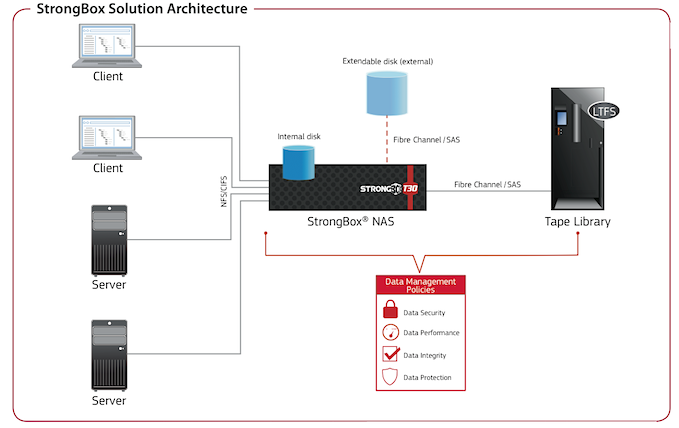 Zum Hintergrund: Der texanische Hersteller von Speicherlösungen Crossroads Systems hat zwischenzeitlich die Verfügbarkeit der zweiten Generation seiner Appliance-basierten Speicherlösung StrongBox bekanntgegeben. StrongBox ist eine Network Attached Storage-Lösung für unstrukturierte Daten, die durch die Kombination von Tape-Speicher und Festplatte sowohl auf eine hohe Datenperformance als auch den wirtschaftlichen Betrieb abzielt. Die Systemarchitektur kombiniert auf Grund von jeweils hierfür optimierten Storagetechnologien schnellen Datenzugriff mit hohem Speichervolumen zu niedrigen Kosten pro Gigabyte.