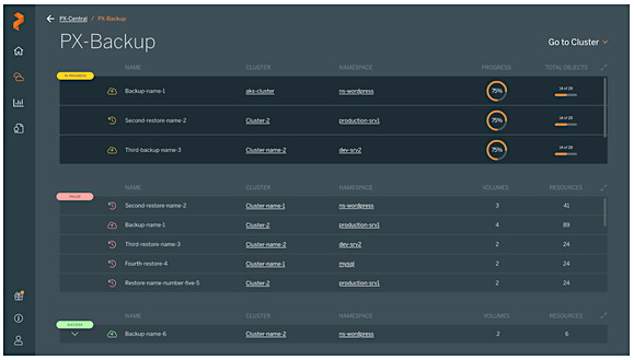 PX-Backup gibt IT-Organisationen eine End-to-End-Backup-Lösung für containerisierte Anwendungen, die in der Lage ist, den Lebenszyklus von Containerdaten zu verwalten, relevante Metadaten zu katalogisieren, die Sichtbarkeit des Datenzugriffs zu verbessern und die Wiederherstellung vollständiger Kubernetes-Anwendungen zu ermöglichen. PX-Backup bietet danach Multi-Cloud-Verfügbarkeit sowohl in zustandslosen als auch in zustandsbehafteten Kubernetes-Clustern und unterstützt Blockspeichersysteme wie Amazon EBS, Google Persistent Disk, Azure Managed Disks, VMware Storage, Pure FlashArray sowie jedes andere CSI-kompatible Speichersystem.
