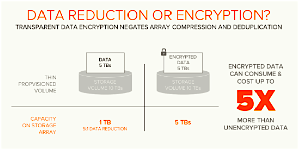 Datenreduzierung und Verschlüsselung sind Gegensätze. Bei der Datenreduzierung werden ähnliche Muster in einem Datensatz identifiziert, um die zu verarbeitende Menge zu reduzieren. Im Gegensatz dazu macht die Verschlüsselung die Daten so zufällig wie möglich, so dass Muster nicht identifiziert werden können. Pure Storage Betreiber können jetzt Thales VTE als externen Schlüsselmanager verwenden, um Blockgeräte zu verschlüsseln, die über ein FlashArray-Gerät an Hosts angeschlossen sind.