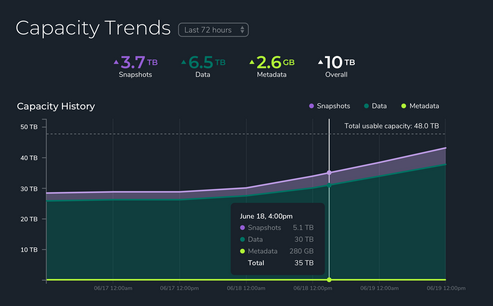 Abb. 1: Real-time analytic Ansicht, Capacity Trends (Bildquelle: Qumulo).