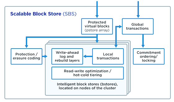 Der Scalable Block Store ist die Blockschicht des Qumulo-Dateisystems, wodurch das Filesystem einfacher zu implementieren und extrem robust ist. Es kann laut Hersteller auch mit Millionen von kleinen Dateien (< 128kb) effektiv sowie effizient umgehen und wurde hinsichtlich Filesystem-Konsistenz entwickelt und nicht ausschließlich auf Performance getrimmt (wie etwa einige HPC-Filesysteme). Da die Metadaten von den Nutzdaten getrennt sind, wird laut Anbieter jedoch eine hohe Leistung beim Rebuild erreicht (keine Tree-Walks); mit SSDs natürlich um so schneller. Zur weiteren Redundanz wird Erasure Coding auf Fileebene eingesetzt.