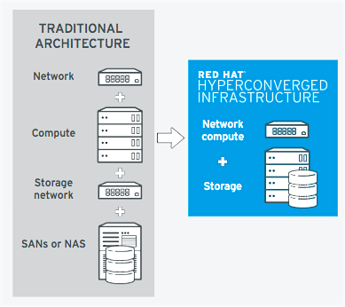 Abb.1: Hyperconverged vs. traditionelle Architektur (Bildquelle: Red Hat)